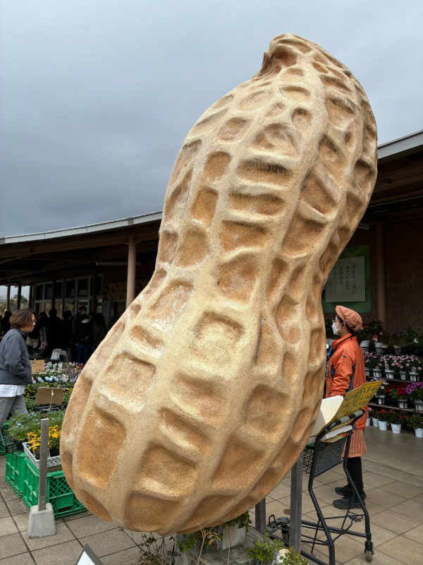 東京湾アクアラインを通って最初にある道の駅で、お店の前にある大きなピーナッツが目印です。