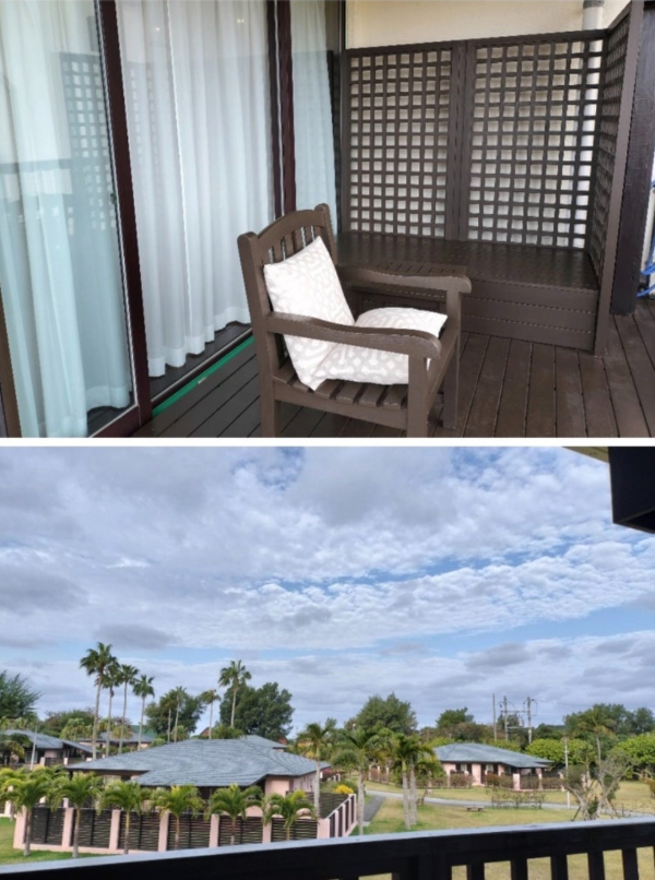 コテージにはベランダ、ヴィラにはウッドデッキがあり、どちらも海は見えませんがリゾート気分が味わえました。爽やかな風を受けながらベランダでくつろぐのは気持ちが良かったです。