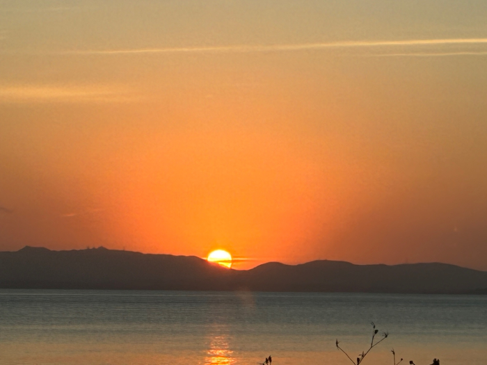 夕暮れ時にはラウンジの窓からこんなに美しい夕日を眺めることができました。